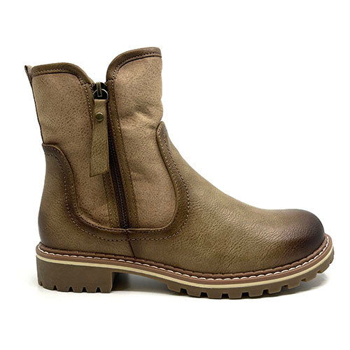 Dejlig 5th Avenue vinterstøvle med en overdel af imiteret glat skind og tekstil med en pyntelynlås på ydersiden af anklen. Støvlen lukkes med en lynlås på indersiden af anklen, og en trækfane bagpå gør det nemt at træde i støvlen. Indvendig har skaftet et blødt plysfoer, imens resten af støvlen har et blødt, lunt fleecefoer, og indersålen er blød og behagelig. Den kraftige og godt mønstrede gummiydersål er stødabsorberende med et godt vejgreb.