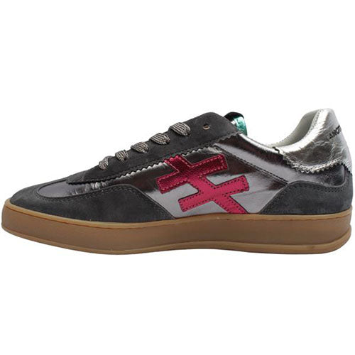 Smart sneaker med en overdel af glat skind med metallisk effekt og ruskind, dekoreret med det fremtrædende logo på siderne. Skoen har en slank silhuet med lav profil og lukkes med glimmersnørebånd. Åbningen er polstret for øget komfort, og et bredt skindmærke med logo på pløsen fungerer som trækfane. Den udtagelige indersål er polstret, støddæmpende og komfortabel, og den fleksible gummiydersål er stødabsorberende med et godt fodfæste. Designet og fremstillet i Spanien. Skoen er en smule stor i størrelsen, så ligger du mellem to størrelser, anbefaler vi, at du vælger den mindste størrelse.