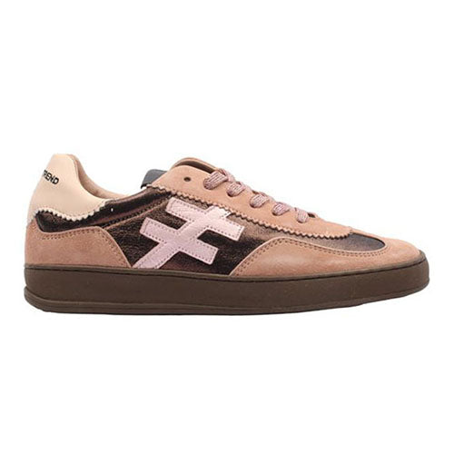 Smart sneaker med en overdel af glat skind med metallisk effekt og ruskind, dekoreret med det fremtrædende logo på siderne. Skoen har en slank silhuet med lav profil og lukkes med glimmersnørebånd. Åbningen er polstret for øget komfort, og et bredt skindmærke med logo på pløsen fungerer som trækfane. Den udtagelige indersål er polstret, støddæmpende og komfortabel, og den fleksible gummiydersål er stødabsorberende med et godt fodfæste. Designet og fremstillet i Spanien. Skoen er en smule stor i størrelsen, så ligger du mellem to størrelser, anbefaler vi, at du vælger den mindste størrelse.