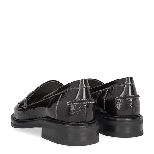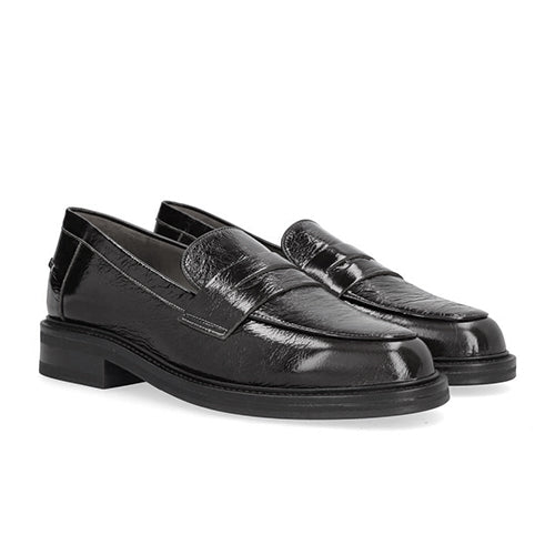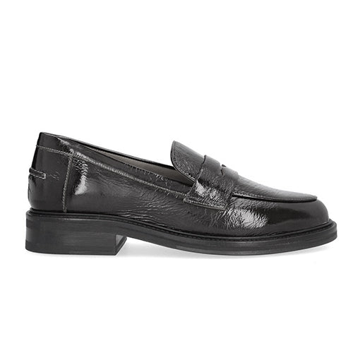 Flot pennyloafer med en overdel af flot lakskind dekoreret med en rem over forfoden. Indvendig har skoen skindfoer og giver dermed et godt fodklima. Indersålen er komfortabel, og ydersålen er stødabsorberende. Her får du et par elegante loafers perfekte til hverdag og fest.