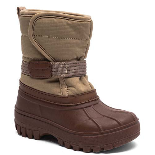 Supersej og varm Pacson vinterstøvle med en overdel bestående af et skaft af tekstil med en rem af glat skind forneden og en vandtæt sko af gummi. Støvlen lukkes på ydersiden af læggen med en bred velcroflap samt rundt om anklen med en justerbar velcrorem med en påsyet skindlap, og en trækfane bagpå gør det nemt at træde i støvlen. Indvendig har støvlen et blødt og varmt uldfoer, som er naturligt varmeregulerende, og den uldbeklædte indersål kan tages ud. Den kraftigt mønstrede gummiydersål er stødabsorberende med et godt vejgreb selv på glatte underlag. Pacson er en innovativ vinterstøvle, der let følger fodens bevægelser - perfekt til vinterens mange eventyr lige fra gåture i skoven til hverdagens aktiviteter og leg.