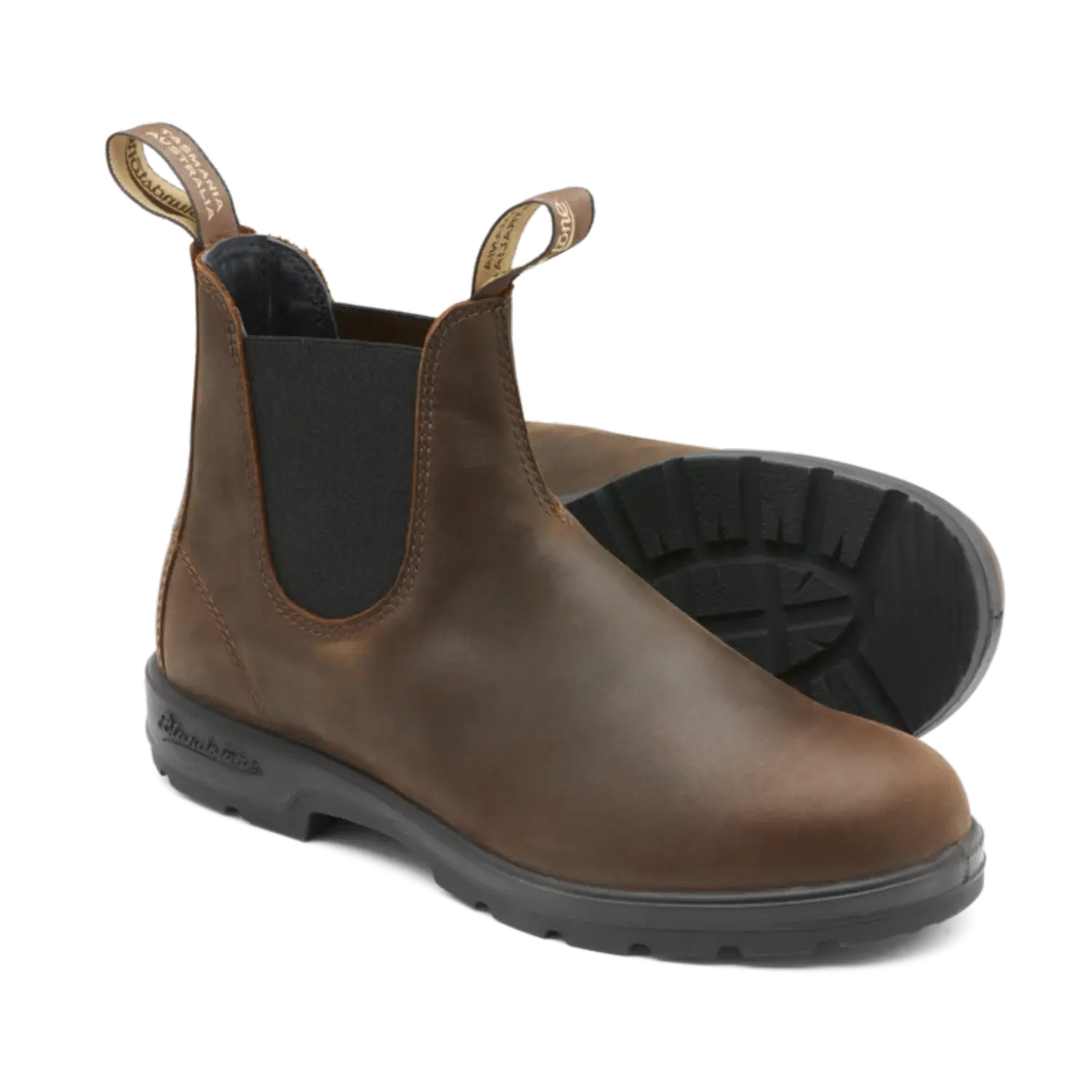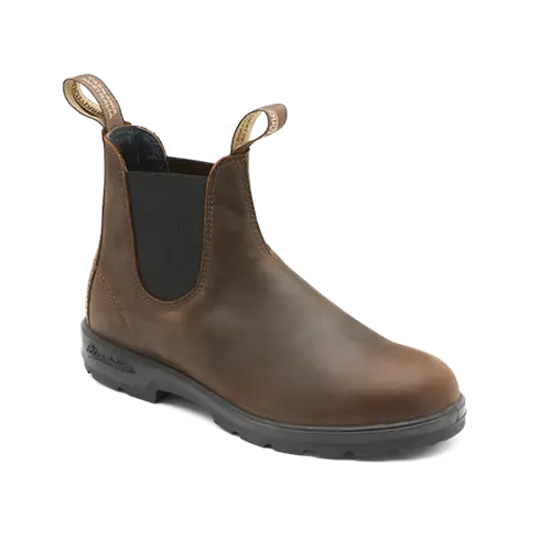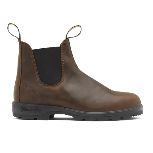 Lækker Blundstone Classics #1609 chelseaboot-støvle - unisex og perfekt til hverdagsbrug. Overdelen er af premium nubucklæder i en flot antikbrun farve med elastikpaneler på siderne, og læderet bliver kun smukkere med tiden. Trækfaner både for og bag gør det nemt at træde i støvlen, som har mere plads i midten og ved tåområdet og dermed giver en mere afslappet pasform allerede fra første gang, du bruger dem. Den udtagelige indersål beklædt med tekstil er åndbar, imens den formstøbte EVA-fodseng giver maksimal komfort, og PU-mellemsålen er stødabsorberende. Den lette og varmebestandige TPU-ydersål modstår olie og syre (Oil and Acid Resistant), har et godt mønster for et forbedret fodfæste, og med XRD®-teknologi i hælen får du optimal stødabsorbering. I skoæsken medfølger et par ekstra indersåler (Multi-Fit Footbeds), som kan lægges ind under støvlens indersål for at regulere pasformen.
