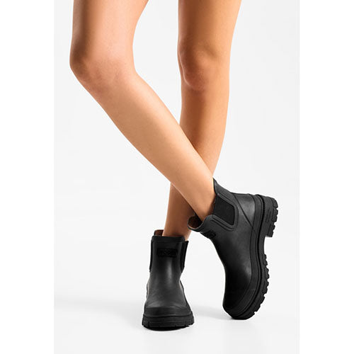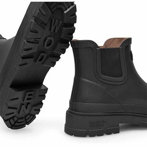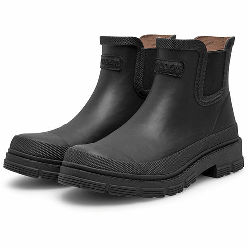 Lækker Liv Waterproof gummistøvle i et elegant design. Den vandtætte overdel er af vulkaniseret, FSC-certificeret gummi med elastikpaneler på siderne og en detalje af genbrugt fiskelæder med ASC-certificering. Indvendig har gummistøvlen et foer af 85 % genanvendt polyester og 15 % genavendt bomuld. Den udtagelige PU-støbte indersål med kork er blød, støddæmpende og komfortabel samt åndbar med Woden Air Flow System™, og den fleksible ydersål med 10 % genbrugsgummi har et godt mønster og er stødabsorberende med et godt fodfæste.