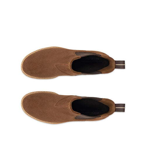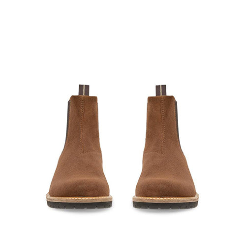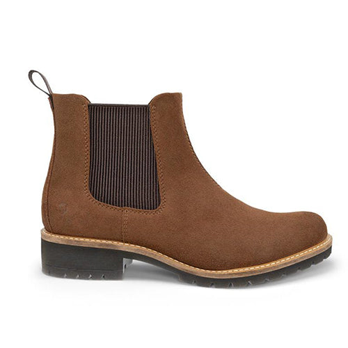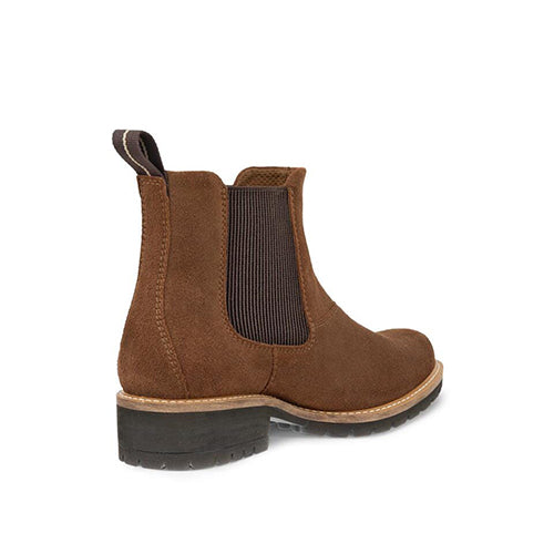 Lækker Elaina Chelsea-støvle med en overdel af ruskind med elastikpaneler på siderne og en trækfane bagpå. Indvendig har støvlen et tekstilfoer, og indersålen kan tages ud. Den fleksible og kraftigt mønstrede ydersål er stødabsorberende med et godt fodfæste.