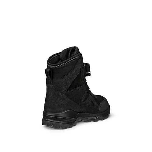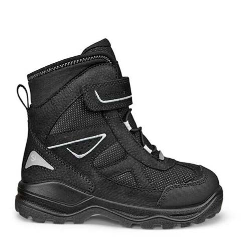 Lækker ECCO Snow Mountain K 1S Lace støvle perfekt til vintervejr. Overdelen er af nubuck og tekstil med en refleksdetalje på hælen, og indvendig har støvlen et varmt foer samt en åndbar, vandtæt og PFAS-fri membran, så fødderne holdes varme og tørre. Støvlen lukkes med en justerbar velcrorem, og den ikkejusterbare elastiksnøre lader støvlen tilpasse sig foden i løbet af dagen. En trækfane bagpå gør det nemt at træde i støvlen. Den øverste del af skaftet er af blødt tekstil, der slutter til om benet, imens resten af skaftet er polstret for øget komfort og beskyttelse. Indersålen kan tages ud, og PU-mellemsålen er stødabsorberende. Det kraftige mønster i gummiydersålen giver forbedret fodfæste, imens ECCO FLUIDFORM™ Direct Comfort-teknologien sikrer en fleksibel og slidstærk sål, som giver fødderne den nødvendige støtte og komfort.