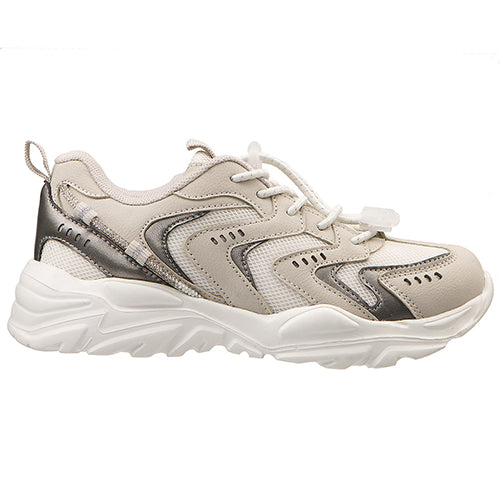 Dejlig Envy Junior sneaker med en overdel af meshtekstil og PU i et supersmart design og med ekstra tåforstærkning. Skoen lukkes med et hurtigt elastiksnøresystem, imens en trækfane på hælen og pløsen gør det nemt at træde i skoen. Åbningen er polstret for øget komfort. Den bløde indersål kan tages ud, og den fleksible ydersål er stødabsorberende med et godt fodfæste.