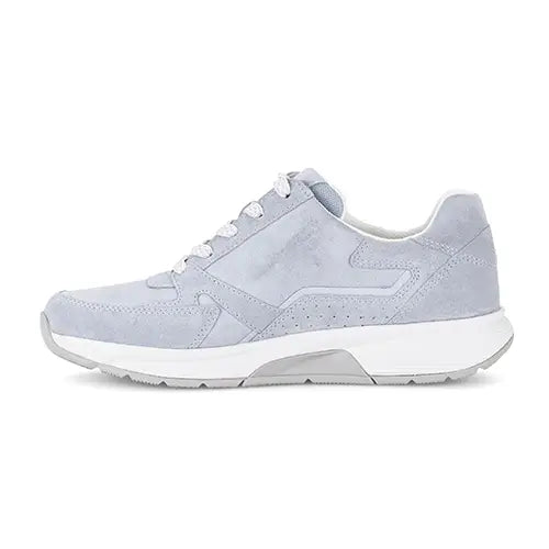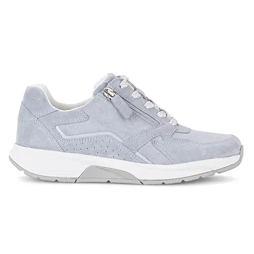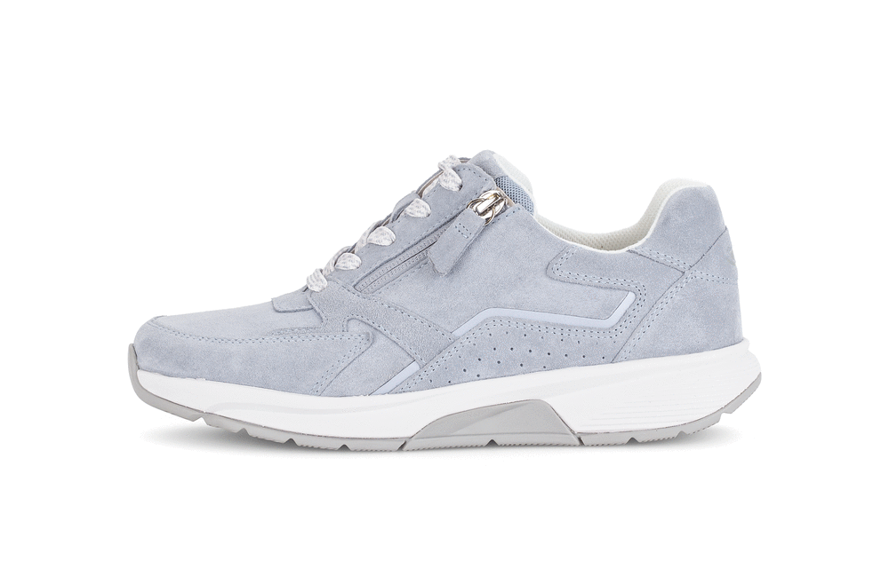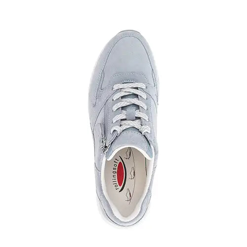 Lækker Rollingsoft sneaker med en overdel af blødt ruskind dekoreret med en stribe syntet på siderne. Skoen justeres med snørebånd og lukkes med en lynlås på ydersiden. Pløs og åbning er polstret for øget komfort. Indvendig har skoen et blødt tekstilfoer, og den udtagelige indersål er blød og komfortabel. PU-mellemsålen er stødabsorberende, og gummiydersålen giver et godt fodfæste. Skoen har 1,5 cm kilehæl, som giver et diskret løft. Rollingsoft-teknologien er et innovativt såldesign, der kombinerer bevægelsesfrihed med stabilitet for at mindske træthed og skabe en naturlig og ubesværet gang. Sålen består af flere lag og har et buet/afrundet design, som hjælper foden med at rulle naturligt fra hæl til tå, og den indbyggede stabilisator under svangen styrer den rullende bevægelse og giver optimal støtte og stabilitet i hvert skridt, imens den polstrede hæl absorberer stød. Fås i halve størrelser.