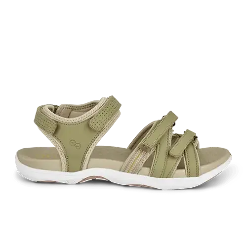 Dejlig og let Corsica Caia sandal i et sporty look, der er ideel til hverdag, ferie og udflugter, hvor du vil være sikker på, at fødderne holder hele dagen. Overdelen er af glat skind (fra certificeret garveri) med let mønstret lycra på remmene, og indvendig er sandalen er foret med elastisk lycra og fugtabsorberende Soft Tex på sålen, som forhindrer svedige fødder i løbet af dagen. Sandalen reguleres og lukkes med fire smalle velcroremme (forfod, vrist og hæl), så du får en perfekt støtte samt tilpasning til fødderne. Modellen er lavet på den rummelige H-læst, som giver god plads til dine fødder. Komforten øges yderligere, ved at sandalen har svangstøtte og en formstøbt indersål med 4,5 mm stødabsorberende EnergySole™ plus ekstra 4,5 mm EnergySole™ i hælområdet. Samtidig betyder konstruktionen med den superelastiske undersål, at fodens små og store muskler aktiveres, hvorved blodcirkulationen øges i fødder og ben, og træthed modvirkes. Den fleksible og stødabsorberende ydersål består af letvægtsmaterialet phylon samt en gummisål nederst, så du er sikret et godt vejgreb.