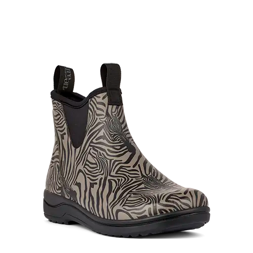 Superlækker Rain Rafaell - Zebra Taupe gummistøvle med en hidtil uset komfort. Det kraftige, bløde gummi holder vandet ude og dine fødder tørre. I gummistøvlen får du Green Comforts unikke 4,5 mm EnergySole™ Shape-indersål med indbygget svangstøtte og ekstra skum under hæl og forfod, som sikrer dig optimal stødabsorbering og komfort til gavn for hele din krop. Gummistøvlen er lavet på den rummelige H-læst, som giver god plads til dine fødder. Det bløde og elastiske neoprenfoer samt de to trækfaner gør det nemmere at træde i støvlen, som er dejlig at have på. Ydersålen er stødabsorberende med et godt vejgreb.