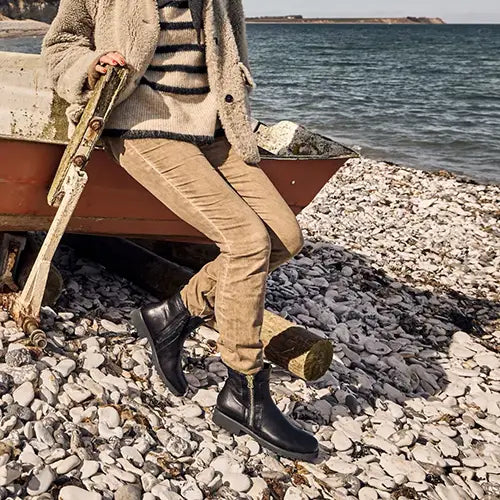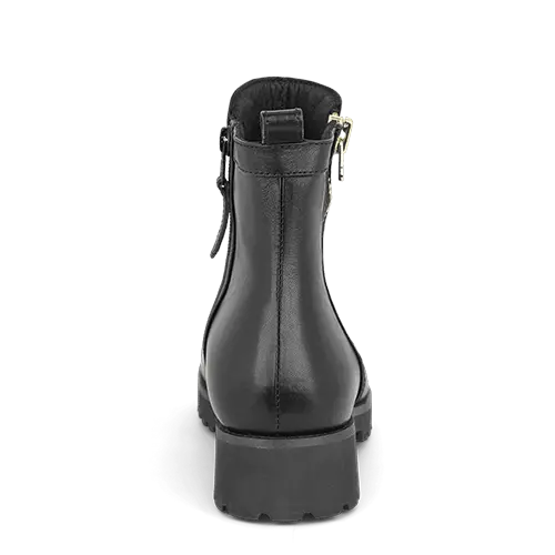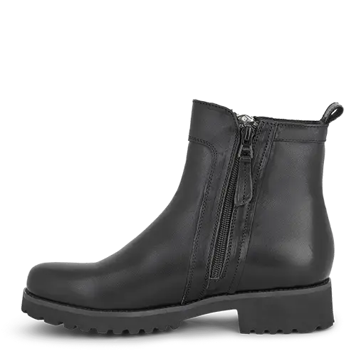 Lækker Strike Sigi ankelstøvle med en overdel af vegetabilsk garvet glat skind med en gylden lynlås på ydersiden af anklen og en sort lynlås på indersiden samt en trækfane bagpå. Indvendig har støvlen et fugttransporterende Soft Tex-foer, der lader dine fødder ånde og holder dem tørre hele dagen. Den udtagelige 3 mm EnergySole™-indersål med hælkop aktiverer de små muskler i dine fødder, giver optimal stødabsorbering og mindsker træthed. Modellen er skabt på den rummeligt H-læst, som giver mere plads om forfoden. Den fleksible og kraftige ydersål har et godt mønster og er stødabsorberende med et godt fodfæste.