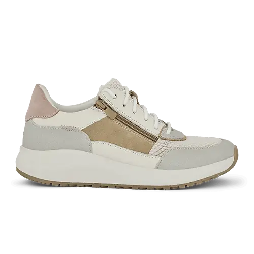 Lækker Zigga Zelda sneaker med en overdel af glat skind, ruskind og åndbart meshtekstil i en flot farvekombination. Skoen justeres med snørebånd og lukkes med en lynlås på ydersiden af snørebåndet. Åbningen er polstret for øget komfort og beskyttelse, og med vidde H er der plads til den bredere fod. Indvendig har skoen et DRI LEX ECO-foer, der fjerner fugt fra fødderne og holder dem tørre, og den udtagelige 4,5 mm EnergySole Shape-indersål med svangstøtte giver en optimal stødabsorbering i hvert skridt. Den ultralette ydersål med gummi i et skridhæmmende mønster er stødabsorberende med et godt fodfæste.
