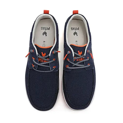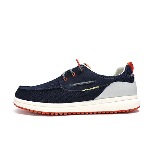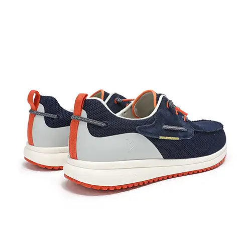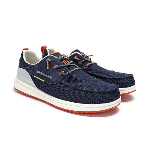 Lækker Nautico Bay Marino sejlersko med en overdel af blødt, genanvendt polyestertekstil lavet af PET-flasker, nubuck ved snøren og TPU om hælen. Overdelen har en moc toe-syning, smarte syninger og en trækfane på hælen. Skoen er en slip on-model med en elastisk snøre, som ikke skal bindes. Åbningen er polstret for øget komfort, og indvendig har skoen et blødt bomuldsfoer. Den ekstrapolstrede og udtagelige EVA-indersål er beklædt med skind og giver ekstra støddæmpning og høj komfort hele dagen. Den fleksible EVA-ydersål med gummibelægning er stødabsorberende med et godt fodfæste. Her får du en lækker og let sejlersko, der er supernem at tage af og på, og som holder dig cool hele sæsonen.