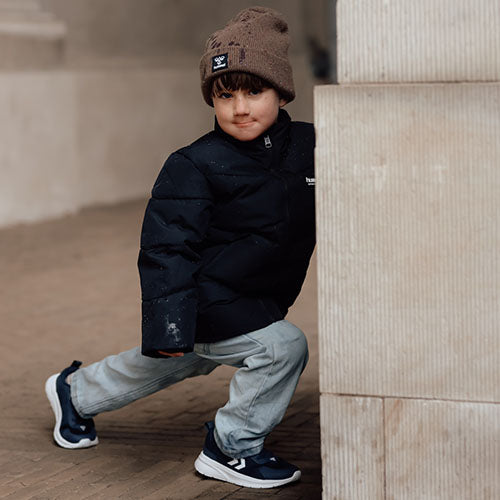 Supersmart Actus TR Breather JR sko med en overdel af åndbart meshtekstil med syntetforstærkninger på snuden, hælen og ved snøren. Overdelen bærer hummels klassiske vinkler på ydersiden af skoen. Lukkes med en klipbar velcrorem over vristen, imens en ikkejusterbar elastiksnøre sørger for løbende tilpasning til foden igennem dagen. Åbningen er polstret for øget komfort og beskyttelse, og en trækfane på hælen gør det nemt at træde i skoen. Den udtagelige indersål har en Fit Zone-afmærkning af voksetillæg, og når du vælger skostørrelse til dit barn, anbefaler vi 1 til 1,5 cm i voksetillæg. Den lette og fleksible EVA-ydersål er stødabsorberende og giver høj komfort.