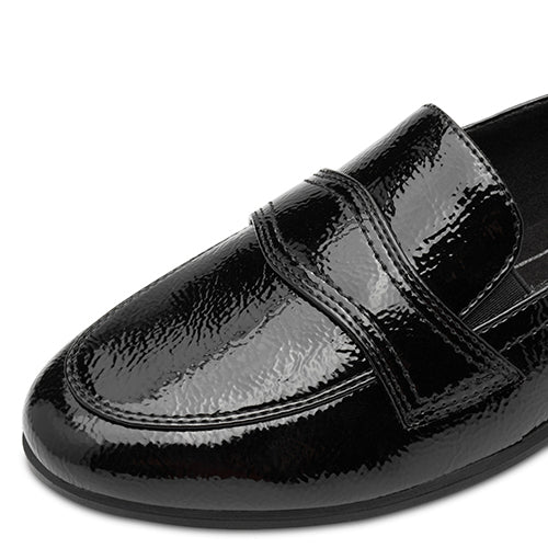 Flot loafer med en overdel af lakeret syntet foret med tekstil. Elastikkiler i åbningen gør det nemmere at træde i skoen, og de sørger for løbende tilpasning til foden i løbet af dagen. Med vidde H er der plads til den bredere fod, og Soft Line-indersålen er blød og komfortabel. Gummiydersålen er støddæmpende med et fint fodfæste. 100 % vegansk.