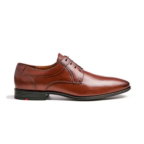 Klassisk og elegant Osmond sko med en overdel af glat læder. Skoen lukkes med snørebånd, og skindindersålen er polstret under hælen. Den fleksible gummiydersål med den karakteristiske røde Lloyd-stribe under hælen er stødabsorberende med et fint fodfæste. Fås i halve størrelser.