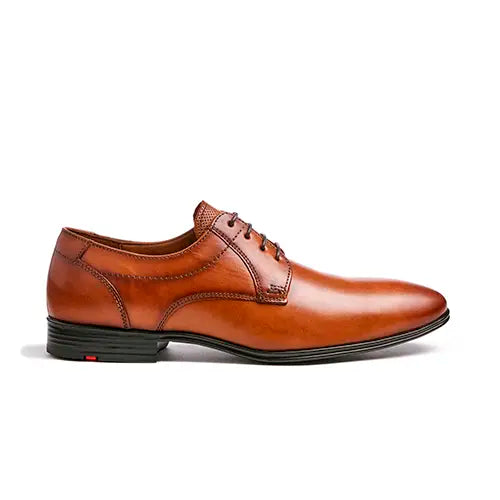 Klassisk og elegant Osmond sko med en overdel af glat læder. Skoen lukkes med snørebånd, og skindindersålen er polstret under hælen. Den fleksible gummiydersål med den karakteristiske røde Lloyd-stribe under hælen er stødabsorberende med et fint fodfæste. Fås i halve størrelser.