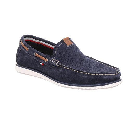 Lækker hyttesko i et flot design med klassiske elementer fra sejlersko og loafers. Overdelen er af blødt ruskind foret med tekstil og dekoreret med brune læderdetaljer. Den komfortable indersål er beklædt med et smart denimstof, og den fleksible gummiydersål er stødabsorberende med et godt fodfæste. Her får du en stilfuld og åndbar sko med komforten i top.