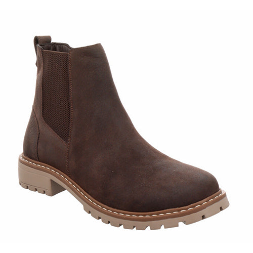 Lækker ankelstøvle med en overdel af olieret nubuck og et elastikpanel på ydersiden. Støvlen lukkes med en lynlås på indersiden af anklen, og en trækfane bagpå gør det nemt at træde i støvlen. Indvendig har støvlen et let, lunt foer, og den udtagelige indersål er beklædt med skind. Den fleksible, robuste gummiydersål har et godt mønster og er stødabsorberende med et godt fodfæste.