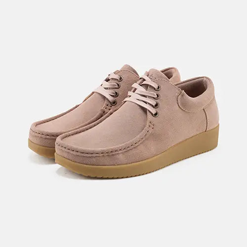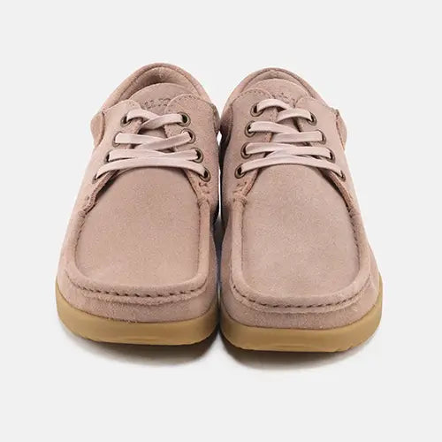 Lækker Anna sko med en overdel af ruskind. Skoen er blød, fleksibel og komfortabel og har bomuldssnørebånd samt mokkasinsyning på forfoden. Åbningen er polstret for øget komfort, og indvendig er skoen foret med Fibertech - Oeko-tex®. Den stødabsorberende ydersål er af ergonomisk naturgummi og giver et godt fodfæste. Designet i Danmark, produceret i Portugal.