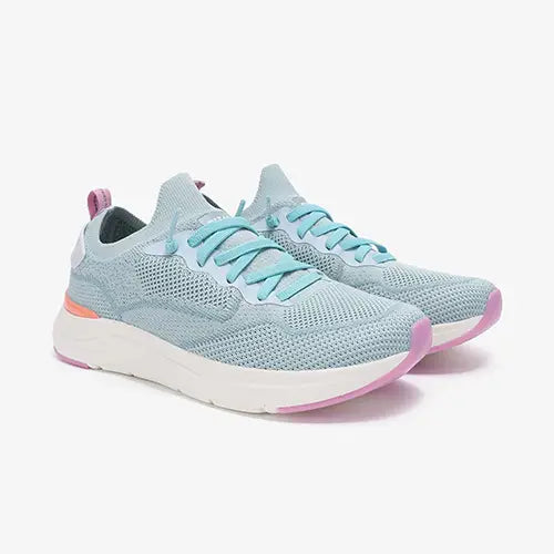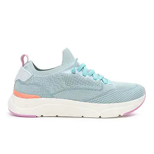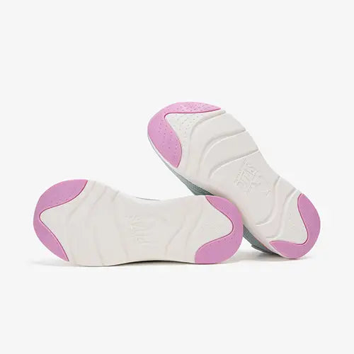Dejlig og superlet Cue Woman sko med en overdel lavet af ét stykke blødt og åndbart netstof af 100 % genanvendt polyestertekstil fra PET-flasker. Der er syntetdetaljer ved snøren og på hælen. Skoen er en slip on-model med en elastiksnøre, som ikke skal bindes, og den elastiske åbning gør skoen nem at tage på. På hælen har skoen nogle smarte detaljer og en trækfane med refleksstribe. Den udtagelige Memory Foam-indersål er ekstremt blød, polstret og komfortabel, og den er støttende og støddæmpende. Den ultralette EVA-ydersål med gummibelægninger er stødabsorberende med et godt fodfæste.