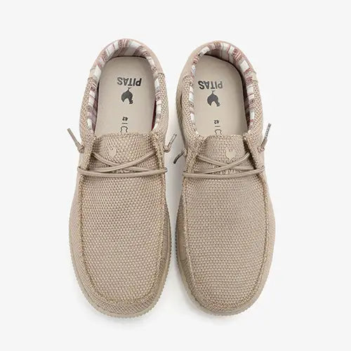 Lækker WP150 Luca sko med en overdel af tekstil lavet af genanvendte PET-flasker og ruskind på hælen og en moc toe-syning på forfoden. Skoen er en slip on-model med en elastisk snøre, og åbningen er polstret for øget komfort. Indvendig har skoen et blødt og smart bomuldsfoer, og den ekstrapolstrede og udtagelige EVA-indersål beklædt med skind er støddæmpende og giver høj komfort hele dagen. Den fleksible ydersål er stødabsorberende med et fint fodfæste. Her får du en lækker, superlet og komfortabel Wallabi-model, som er supernem at tage af og på, samtidig med at den er et blikfang med sit flotte og afslappede design, som holder dig cool hele sæsonen.