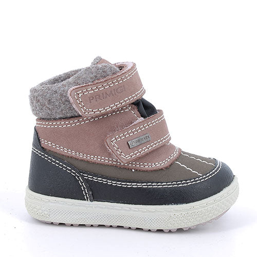 Dejlig Barth 19 GTX vinterstøvle til de mindste. Overdelen er af nubuck og syntet, og åbningen er en bred og polstret tekstilkant, der øger komforten og beskyttelsen. Indvendig har støvlen et varmt foer, og sammen med en åndbar og vandtæt GORE-TEX®-membran holdes fødderne varme og tørre. Støvlen lukkes med to velcroremme. Indersålen kan tages ud, og den fleksible ydersål er stødabsorberende med et fint fodfæste.
