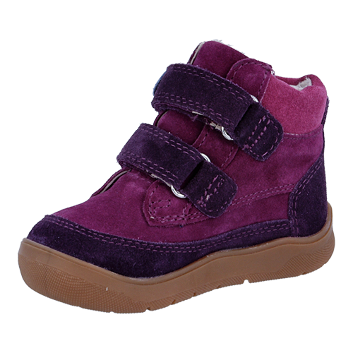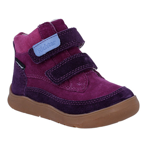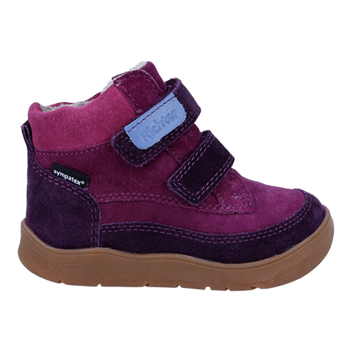 Dejlig støvle med en overdel af ruskind i flotte farver. Støvlen lukkes med to velcroremme over vristen. Indvendig har støvlen et let, lunt foer, og med en åndbar Sympatex-membran holdes fødderne tørre i vådt vejr. Indersålen kan tages ud, og gummiydersålen er stødabsorberende med et godt fodfæste.
