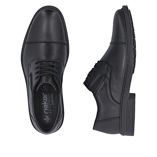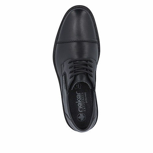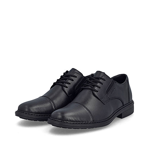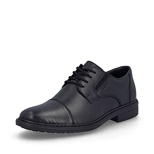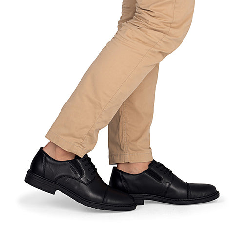 Flot herresko med en overdel af glat skind og imiteret skind. Skoen lukkes med snørebånd, og elastikkiler på hver side af snørebåndet sørger for øget fleksibilitet og komfort. Åbningen er polstret for øget komfort. Indvendig er skoen foret med tekstil og syntet, og indersålen er beklædt med imiteret skind. Den fleksible ydersål med blokhæl er stødabsorberende med et fint fodfæste.
