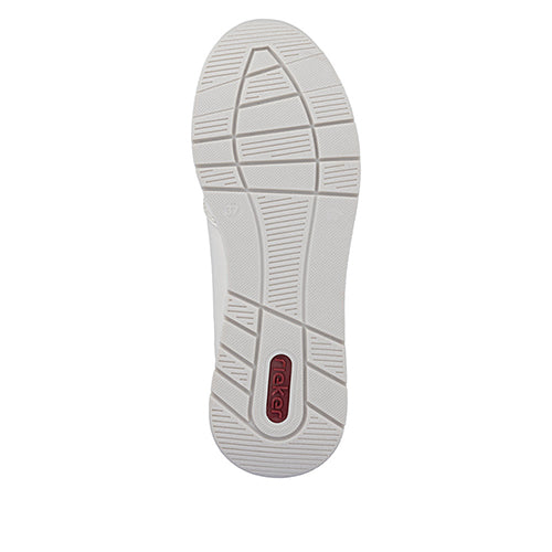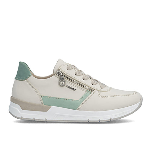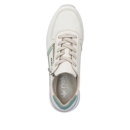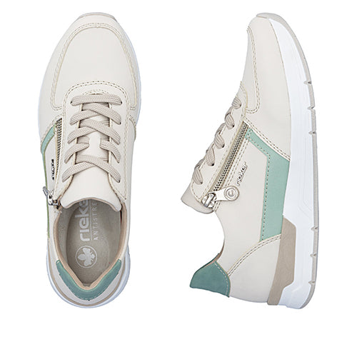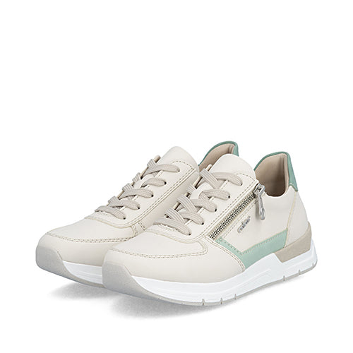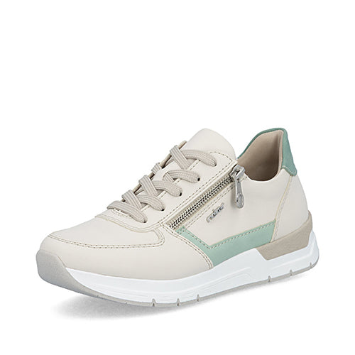 Flot sneaker med en overdel af imiteret glat skind. Skoen justeres med snørebånd og lukkes med en lynlås på ydersiden af snørebåndet. Indvendig har skoen et tekstilfoer. Den udtagelige indersål er blød, polstret og komfortabel, mellemsålen er stødabsorberende, og gummiydersålen giver et godt fodfæste.