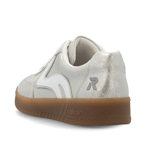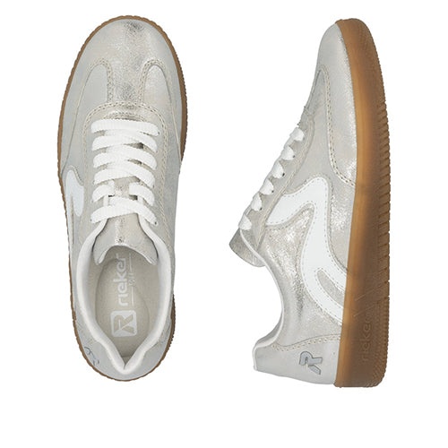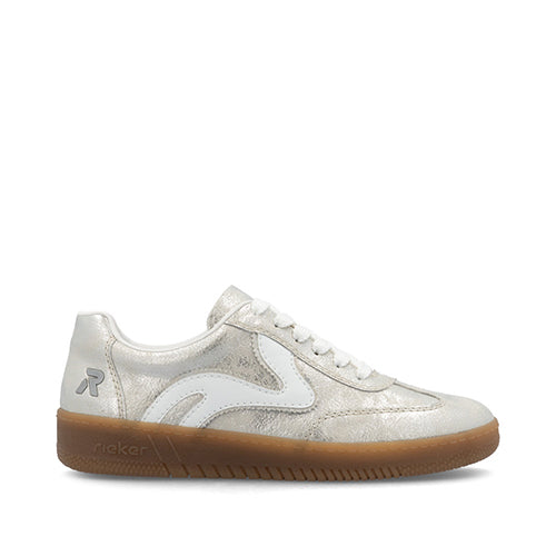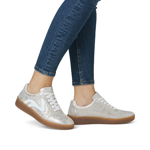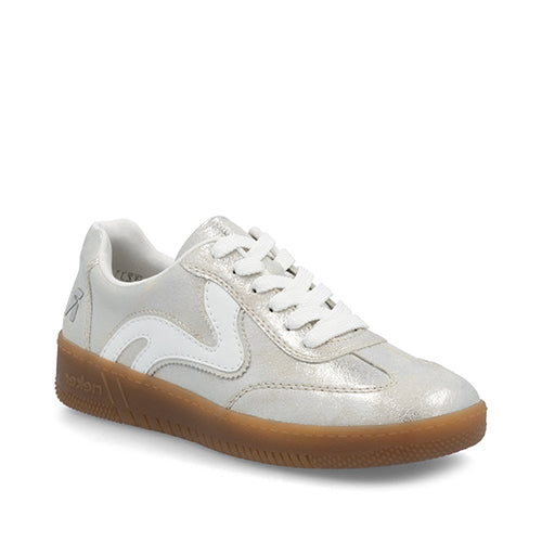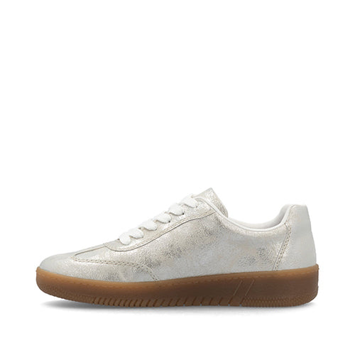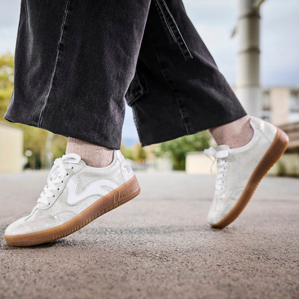 Supersmart Metallic low-top sneaker med en overdel af højkvalitets syntetisk læder med en hvid detalje på ydersiden. Skoen lukkes med snørebånd, og åbningen er polstret for øget komfort. Indvendig har skoen et komfortabelt tekstilfoer, og den udtagelige indersål er polstret, blød og støddæmpende. Den fleksible TR-ydersål er slidstærk og stødabsorberende med et godt vejgreb. Skoen er 100 % vegansk.