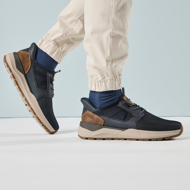 Dejlig Ready2GO sko, som du nemt kan træde i uden at bukke dig eller bruge dine hænder. Skoen er således en slip-on-model med en overdel af tekstil med imiteret glat skind på hæl, sider, pløs og ved elastiksnøren. En ikkejusterbar elastiksnøre sørger for tilpasning til foden i løbet af dagen. Med vidde H-H½ er der plads til den bredere fod. Den udtagelige indersål er komfortabel, og den godt mønstrede ydersål med gummibelægninger er stødabsorberende med et godt fodfæste.