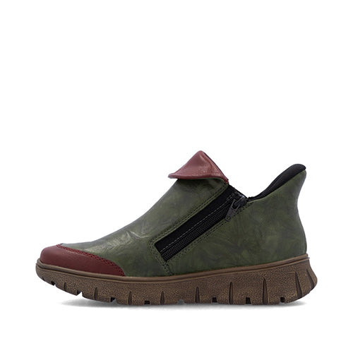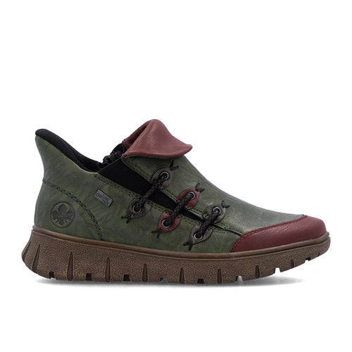 Ready2GO støvlet med en overdel af glat skind og syntet med en elastikkile på ydersiden og en lynlås på indersiden af foden. Med Ready2GO-funktionen og den faste hælkappe træder du nemt i støvlen, og med vidde H er der plads til bredere fod. Indvendig har støvlen et blødt, lunt fleecefoer, og sammen med en kraftigt vandafvisende RiekerTex-membran holdes fødderne lune og behagelige. Den udtagelige indersål er polstret, støddæmpende og komfortabel, og ydersålen er stødabsorberende med et fint fodfæste. Ca. 1 cm hældrop for øget komfort.