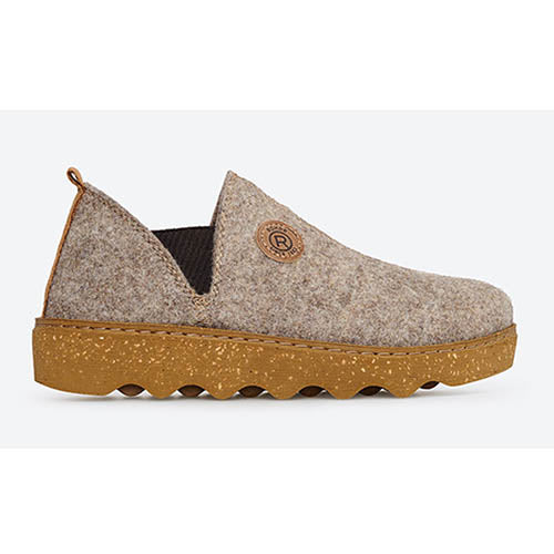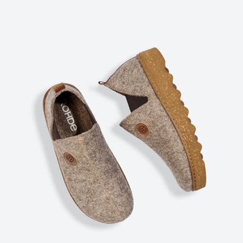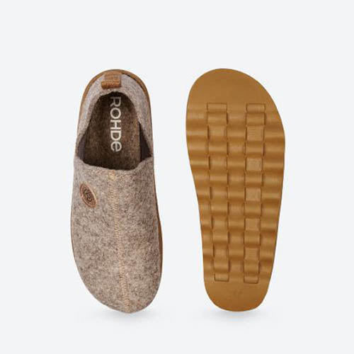 Lækker hjemmesko med en overdel af filt dekoreret med et påsyet rundt Rohde-logo på vristen samt en lille trækfane på hælen. Hælen er lukket, og elastikkiler på siderne gør det nemt at træde i hjemmeskoen. Den udtagelige indersål er polstret, støddæmpende og komfortabel, og den kraftige ydersål er stødabsorberende og fleksibel og giver med sit mønster et fint fodfæste.