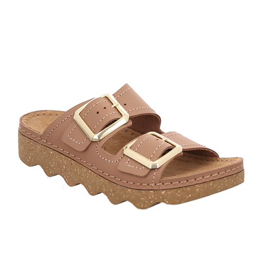 Lækker slippers-sandal med en overdel af blød nubuck. To brede remme med justerbare spænder holder foden på plads. Den komfortable dæksål er beklædt med ruskind for et optimalt fodklima, og den kraftige plateau-ydersål er fleksibel og stødabsorberende med et godt fodfæste.