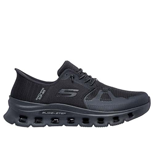 Smart Slip-ins Glide Step Pro sko med en overdel af striktekstil og syntet med en ikkejusterbar elastiksnøre. Med Skechers Hands Free Slip-ins-teknologien kan du nemt træde i skoen uden at bukke dig eller bruge dine hænder. Designet med en komfortabel Heel Pillow, som former sig efter din hæl og holder din fod sikkert på plads. Den polstrede Air-Cooled Memory Foam-indersål er komfortabel, og Glide-Step-mellemsålen er designet til at give naturlig momentum med hvert skridt. Ydersålen med gummibelægninger er stødabsorberende med et godt fodfæste. Kan maskinvaskes ved maks. 30 grader. Fremstillet af 100 % veganske materialer. Fås i visse halve størrelser.