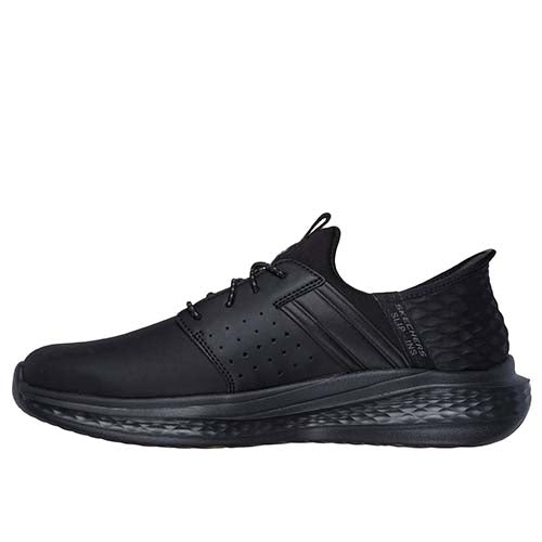 Lækker Slip-ins Slade - Zachary stretch-snøresko med en overdel af nubuck, tekstil og syntet med en ikkejusterbar elastiksnøre. Med Skechers Hands Free Slip-ins-teknologien kan du nemt træde i skoen uden at bukke dig eller bruge dine hænder. Designet med en komfortabel Heel Pillow, som former sig efter din hæl og holder din fod sikkert på plads. Med Relaxed Fit er skoen lidt mere rummelig. Den komfortable Air-Cooled Memory Foam-indersål med Goga Mat Arch-polstring for ekstra støtte er kulinfunderet for at hjælpe med at neutralisere potentiel lugt. Ydersålen er stødabsorberende med et fint fodfæste. Fås i visse halve størrelser.