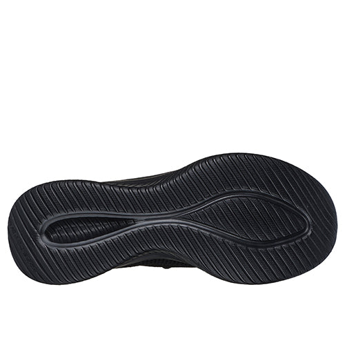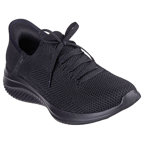 Slip-Ins Ultra Flex 3.0 - Elevated Motion sko har Skechers Slip-ins-teknologi, hvor du nemt og bekvemt kan træde i skoen uden at bukke dig eller bruge dine hænder. Om hælen får du øget komfort med den indvendigt siddende specialdesignede pude, som former sig til din hæl og dens naturlige kurve. Den åndbare overdel er af tekstil med et ikkejusterbart pyntesnørebånd. Air-Cooled Memory Foam-indersålen former sig efter din fod og giver en fin støddæmpning, en god støtte og komfort dagen lang, og med Stretch Fit tilpasser skoen sig din fod som strømper. Ydersålen er slidstærk, fleksibel og stødabsorberende med et godt fodfæste og en god komfort. Kan maskinvaskes ved max 30 grader. 100 % vegansk. Fås i halve størrelser.