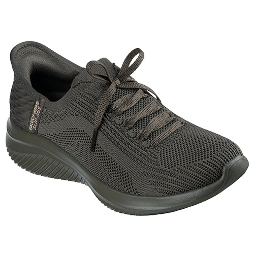 Lækker Slip-ins Ultra Flex 3.0 - Pure Color sko med en overdel af åndbart konstrueret striktekstil med blød og elastisk Stretch Fit, så den tilpasser sig foden som en strømpe. Overdelen er dekoreret med en ikkejusterbar Skechers No Tie Fit-snørebånd, som forbliver bundet. Med Slip-ins får du Skechers’ håndfrie teknologi, hvor du nemt kan træde i skoen uden at bruge dine hænder eller at bukke dig, og du får en fast hælkappe med en specialdesignet hælpude, der former sig til din hæl og dens naturlige kurve. Skoen har en polstret og komfortabel Air-Cooled Memory Foam-indersål, som former sig efter din fod og dæmper stød hele dagen, og den fleksible ydersål er stødabsorberende med et fint fodfæste. Her får du en afslappet og let sko, hvor komfort og bekvemmelighed er i top - perfekt til gåture og hverdagsbrug. Kan maskinvaskes ved maks. 30 grader. Er fremstillet af 100 % veganske materialer.