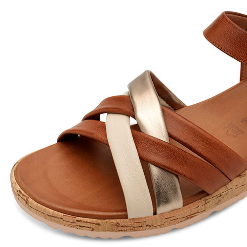 Fin sandal med en overdel af syntet og glat skind, foret med syntet. Sandalen lukkes med en velcrorem, som har et justbart rundt spænde. Den behagelige dæksål er beklædt med glat skind, og den fleksible ydersål er stødabsorberende med et fint fodfæste.