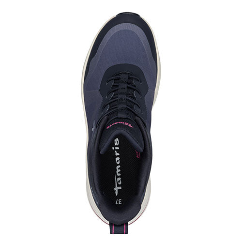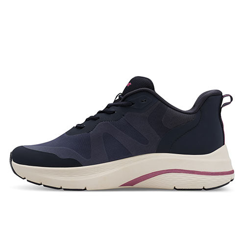 Fin sneaker med en overdel af tekstil og syntet. Denne step in-model har et højt skaft med polstret instep og en trækfane på hælen, imens en ikkejusterbar elastik lader skoen tilpasse sig foden i løbet af dagen. Skoen har lidt svangstøtte, og indersålen kan tages ud. Den fleksible ydersål med gummibelægninger er stødabsorberende med et godt fodfæste.