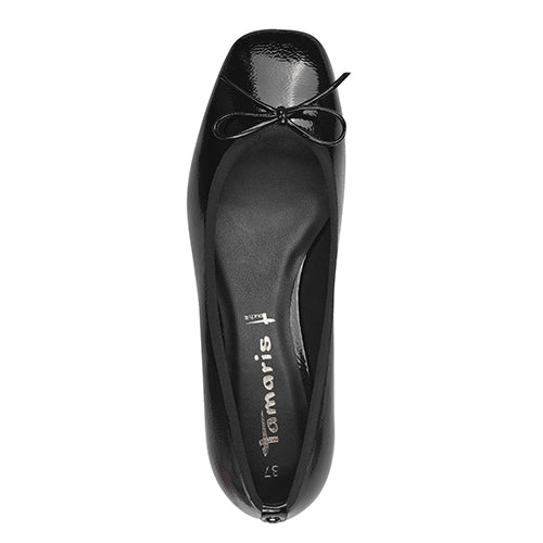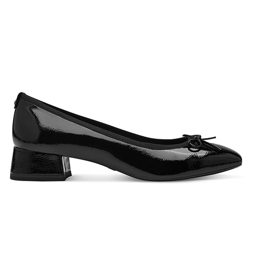 Flot sko i ballerinalook med blokhæl. Overdelen er af lakeret syntet dekoreret med en sød sløjfe på forfoden. Touch-it-indersålen er blød og polstret, og ydersålen har ANTIslide. Den 4 cm høje blokhæl giver et ekstra feminint look. 100 % vegansk.