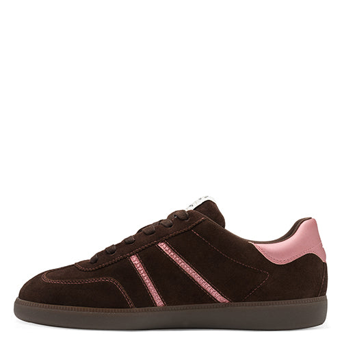 Flot sneaker med en overdel af ruskind og syntet foret med tekstil. Skoen lukkes med snørebånd, og åbningen er polstret for øget komfort. Den udtagelige indersål er polstret, støddæmpende og komfortabel, og den fleksible gummiydersål er stødabsorberende med et fint fodfæste.