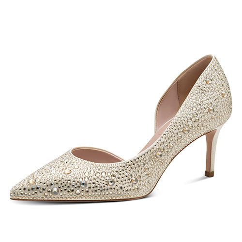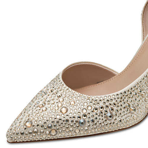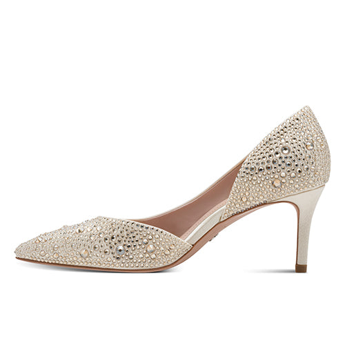 Flot stiletsko med en overdel af tekstil med en flot glans, overstrøet af champagnefarvede similisten i forskellige størrelser. Touch-it-indersålen er blød, støddæmpende og komfortabel og tilpasser sig din fod for optimal bærekomfort. Skoen har en lav udskæring og en spids snude, og sammen med en 7 cm høj stilethæl får du et superfeminint look.