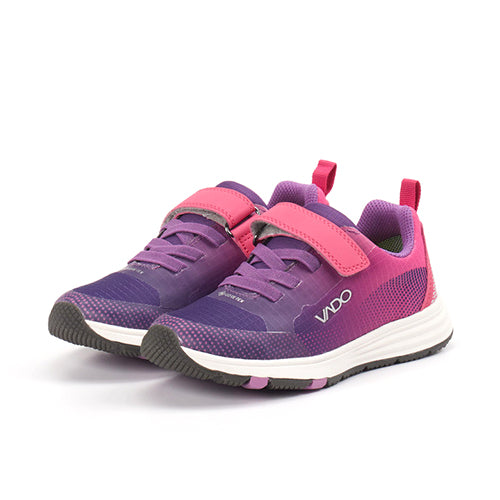Superlækker Winny Lo Elastic GTX sneaker med en overdel af meshtekstil og slidstærk dobbelt TPU-belægning på snuden, ved elastiksnøren og på hælen. Skoen har mange flotte detaljer, og den lukkes med en velcrorem over vristen, imens en trækfane bagpå gør det nemmere at træde i skoen. En åndbar og vandtæt Gore-Tex®-membran sørger for tørre fødder. Med VADO Two-Width System har skoen to indersåler, som giver henholdsvis Medium og Wide Fit; fjern den nederste for mere rummelighed eller plads til ortopædiske indlæg. Indersålen er markeret med vokseplads, og den kan vaskes ved 30 grader. EVA-mellemsålen er støddæmpende, og gummiydersålen sikrer et godt fodfæste. VADO X Flex-zonen i det forreste område af sålen har vist sig at understøtte en sund gangudvikling. Den perfekte sko til leg både i naturen og i skolegården.