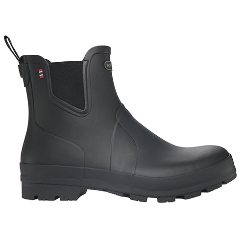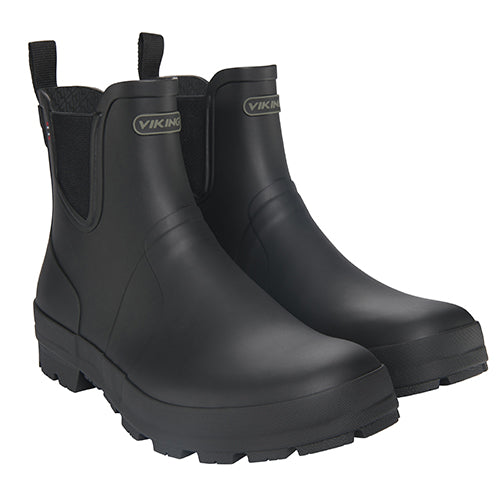 Kort, vandtæt Bergen gummistøvle med en overdel af slidstærk, PVC-fri gummi, som er modstandsdygtig over for ridser og skrammer. Elastikpaneler på siderne samt en trækfane bagpå gør det nemt at træde i gummistøvlen. Indvendig har gummistøvlen et hurtigtørrende tekstilfoer, og den åndbare indersål med en smule svangstøtte kan tages ud. Gummistøvlen er designet over en læst, som eliminerer trykpunkter og giver en tæt og sikker pasform med lidt ekstra plads til komfort. Den kraftige gummiydersål er stødabsorberende med et godt vejgreb i vådt vejr. Denne veganske gummistøvle er en stærk kombination af stil, komfort og funktion.