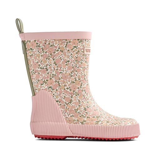 Dejlig Welly gummistøvle fremstillet af vandtæt naturgummi foret med 100 % genanvendt polyester. Støvlen har et sødt blomsterprint og et højt skaft, og en trækfane bagpå gør det nemt at træde i gummistøvlen. En refleksdetalje bagpå øger synligheden. Den udtagelige indersål er behagelig, imens ydersålen er designet til at dække tæerne for at tilbyde ekstra beskyttelse, når dit barn leger udendørs. Gummistøvlen er almindelig i størrelsen og nem for dit barn at hoppe i.