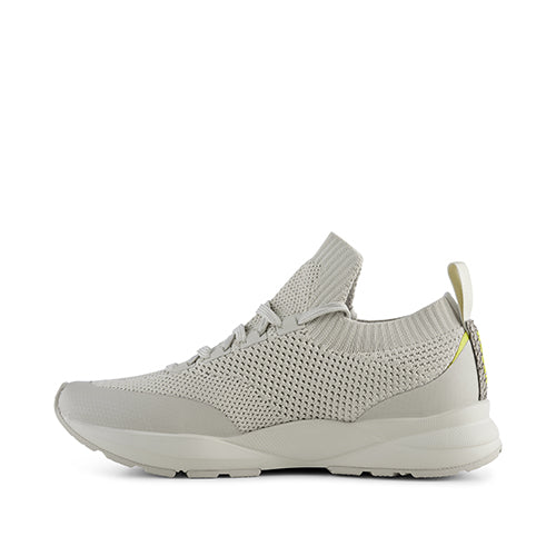 Trendy Esther sneaker i tekstil og med detalje i fiskelæder. Overdelen er af tekstil, som gør skoen let og behagelig. Skoen lukkes med snørebånd, og en trækfane på hælen gør det nemt at få skoen på. Den udtagelige indersål i naturlig kork samt en ultrablød PU-base med lufthuller, som sikrer god ventilation inde i skoen, er stødabsorberende. Den fleksible ydersål giver et godt fodfæste.