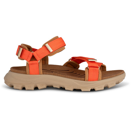 Lækker Sandie sandal i hiking-stil med en robust track-sål og tre justerbare velcroremme for en optimal pasform (forfod, vrist og hæl). Overdelen er af slidstærkt tekstil, og remmenes materiale kan genanvendes. Den anatomisk formede fodseng er polstret og superkomfortabel og giver optimal støtte, imens Wodens Natural Soft-teknologi sikrer en høj komfort og ultrablød gangoplevelse. Ydersålen er desuden fleksibel og stødabsorberende med et godt fodfæste. Sandalen er stor i størrelsen, så vi anbefaler at gå en størrelse ned.